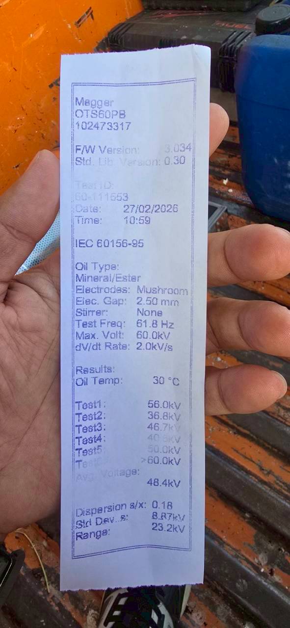 1 ตรวจวัดค่าฉนวนน้ำมัน (IEC 60156) ไม่ต่ำกว่า 30 kV kV