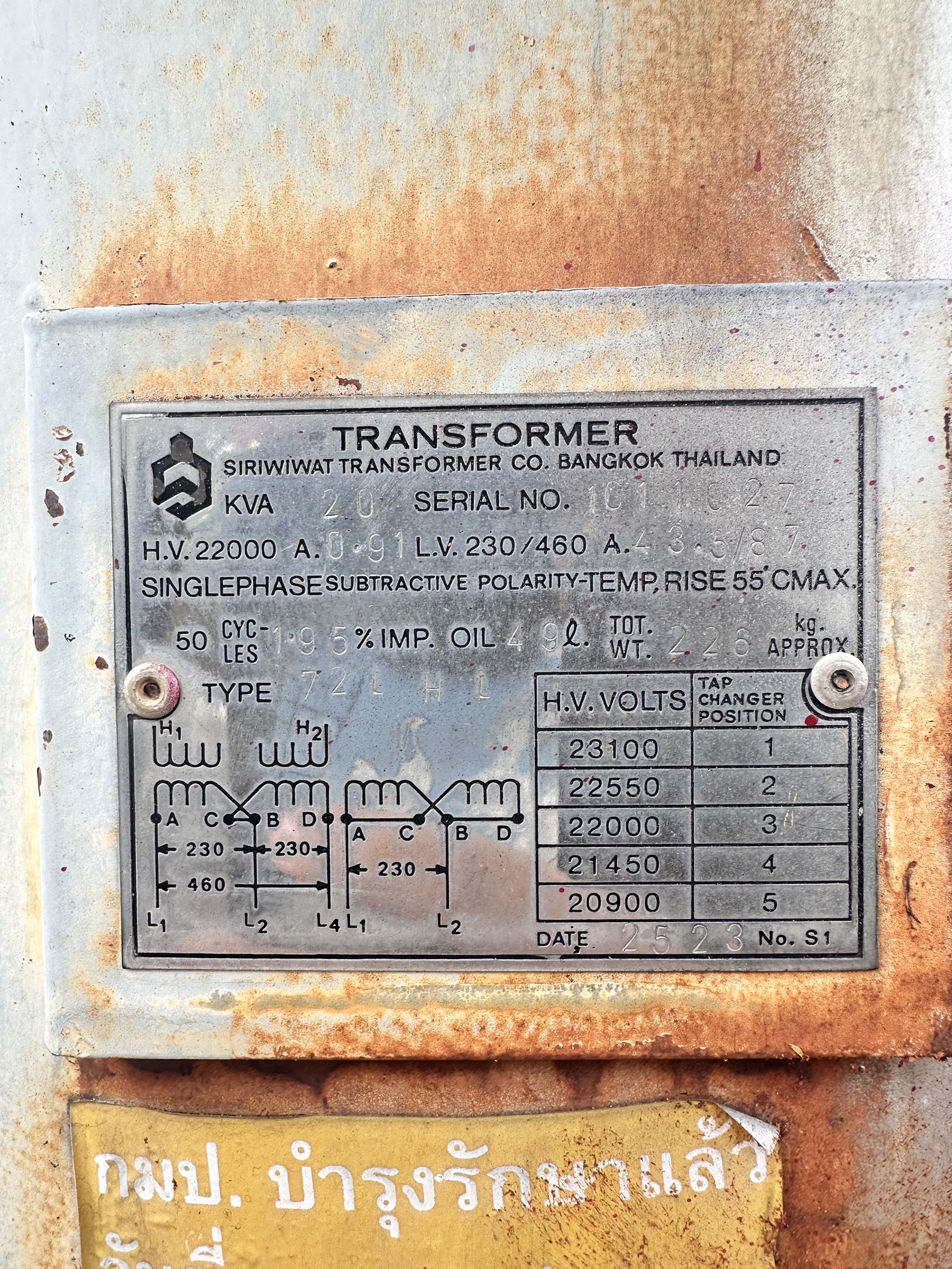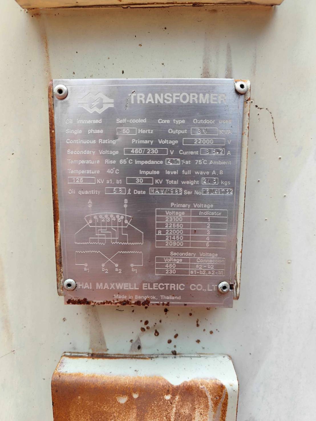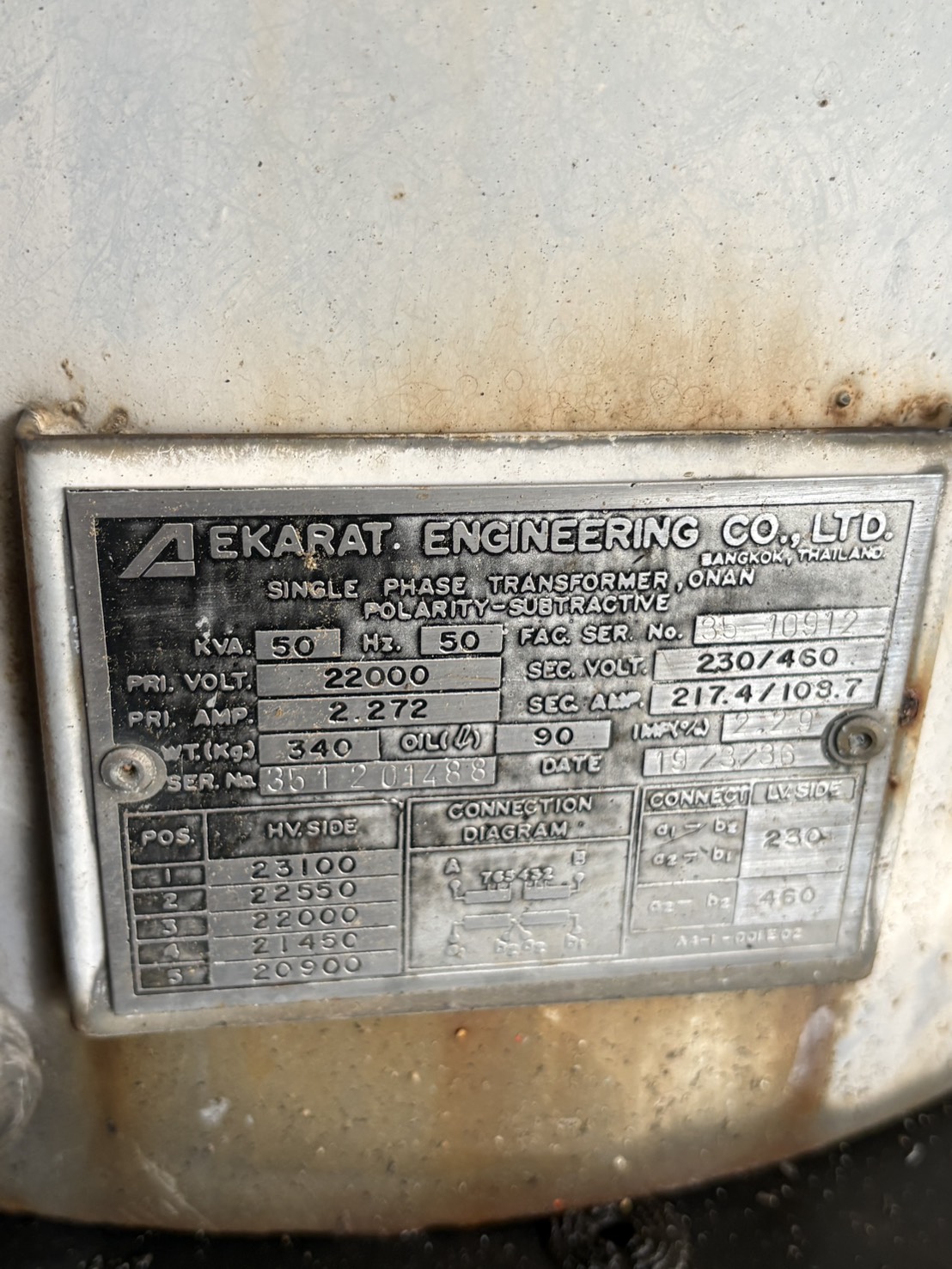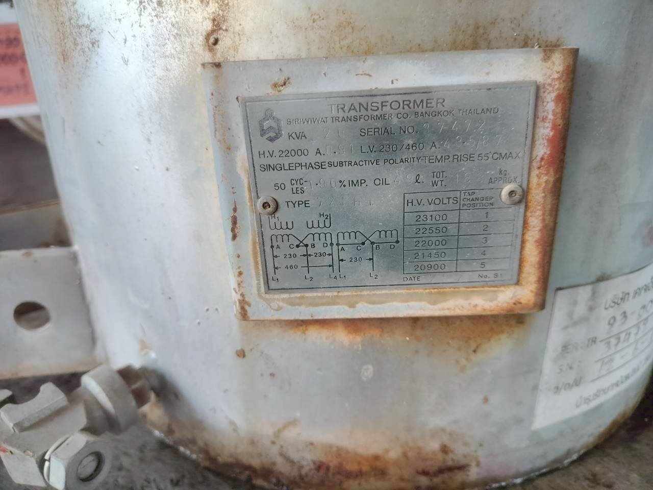 | 75 | กฟส.กระทุ่มแบน | เสื่อมสภาพ | TR27-008630 | 250 | 3 |