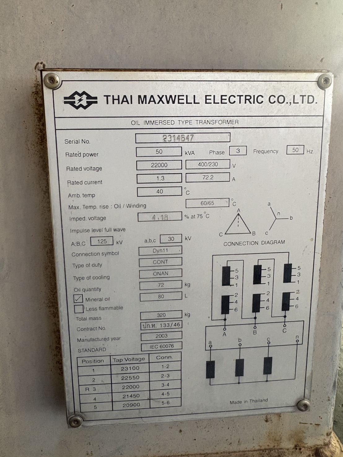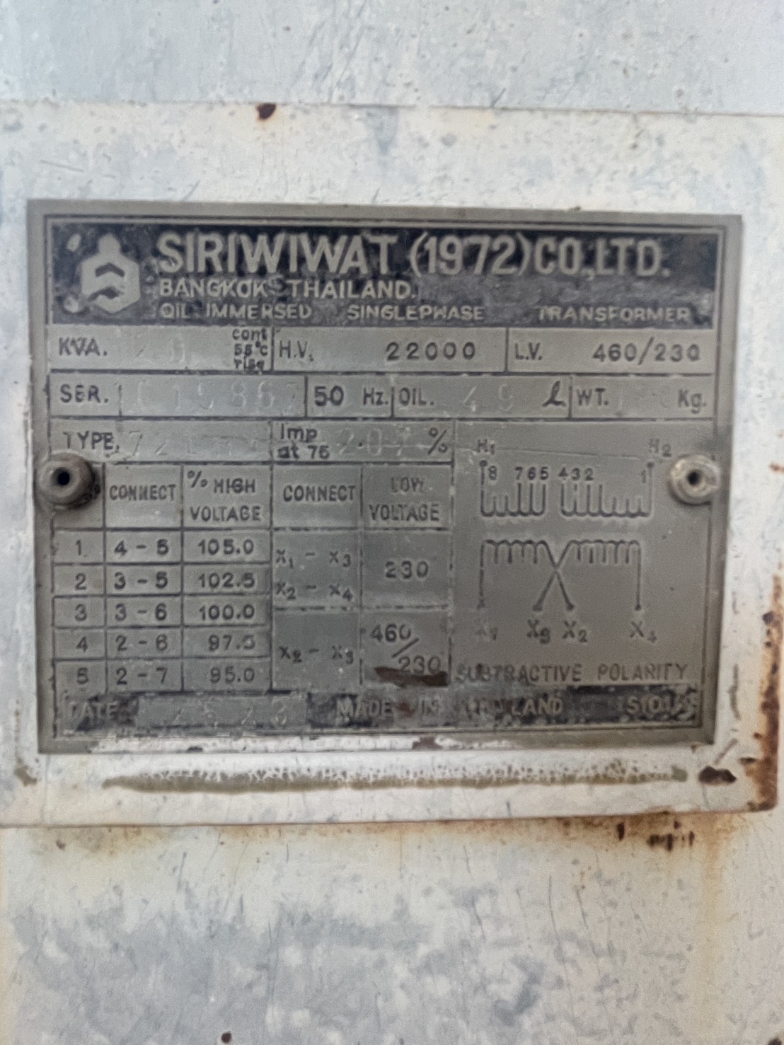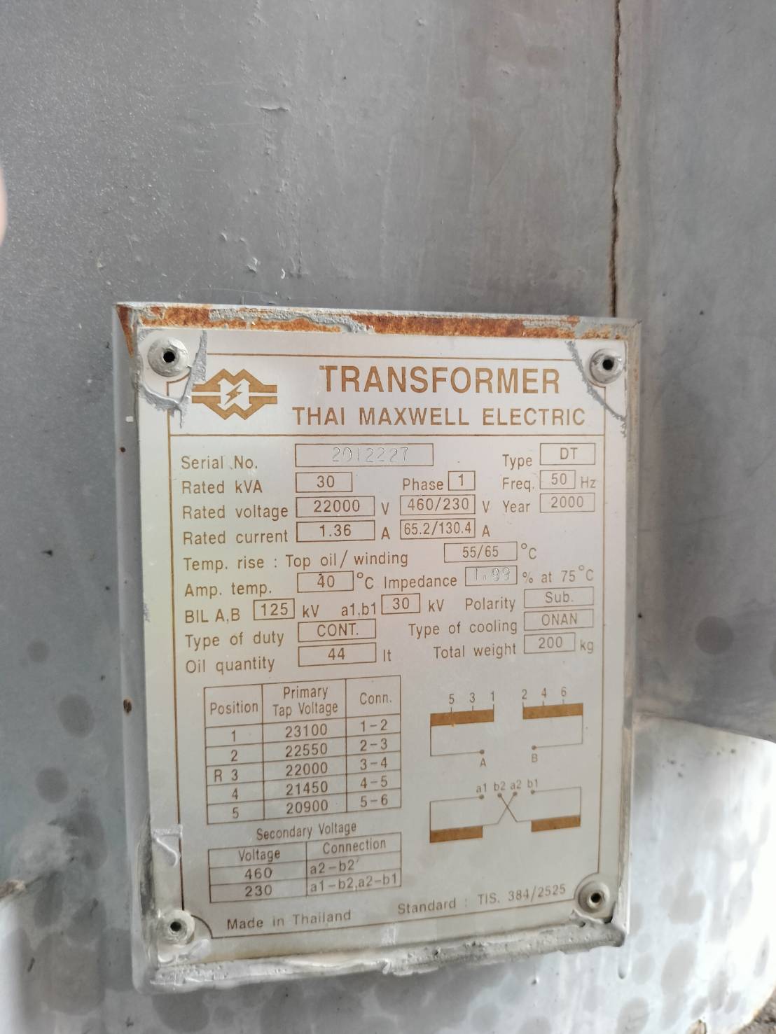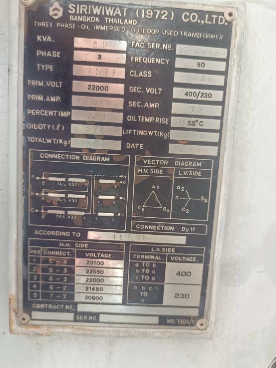 | 75 | กฟส.กระทุ่มแบน | เสื่อมสภาพ | TR27-008630 | 250 | 3 |