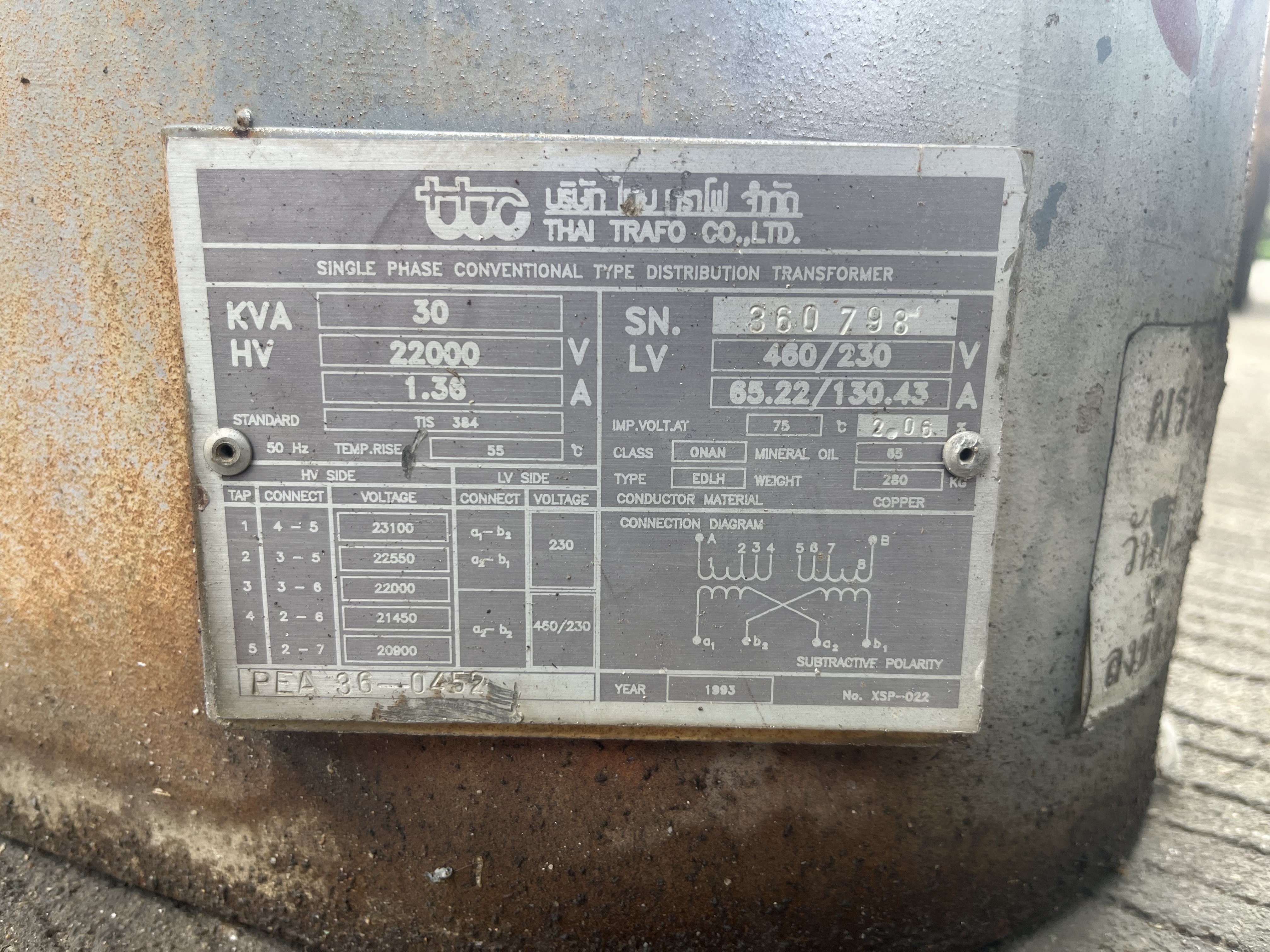 | 30 | กฟจ.สมุทรสาคร | ชำรุด | TR50-005051 | 250 | 3 |