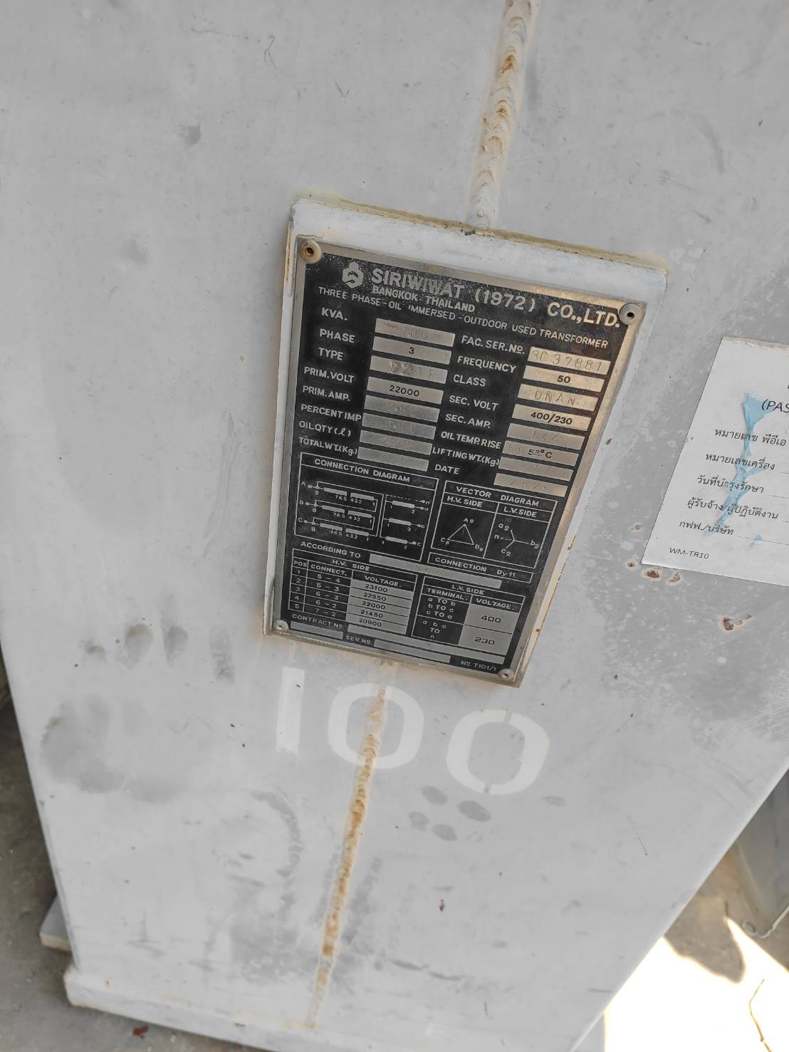 | 102 | กฟส.สามพราน | ชำรุด | TR40-019422 | 250 | 3 |