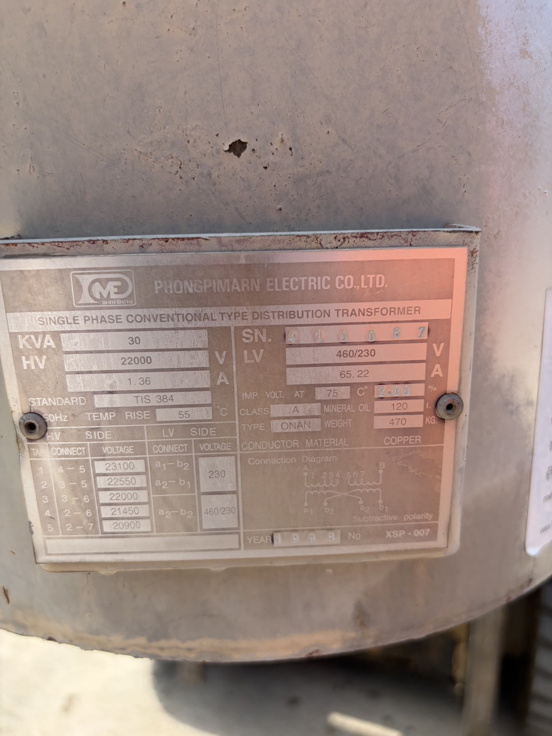 การไฟฟ้าส่วนภูมิภาคเขต 3 ภาคกลาง (จ.นครปฐม) แบบฟอร์มตรวจสอบลักษณะการชำรุดของหม้อแปลง